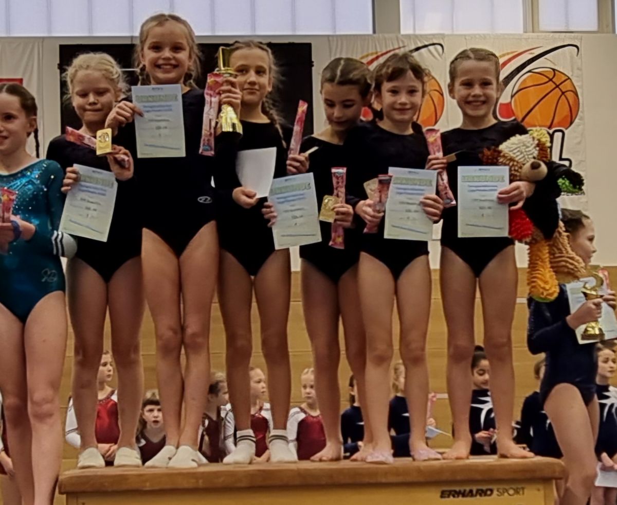 Das Trainerteam aus Zhenya Kurochkina, Lara Lenz, Ines Leinhäuser, Daniela Förg und Sarah Buhlmann zeigte sich sehr stolz auf die geschlossene Teamleistung und die große Freude der Kinder am Turnen.